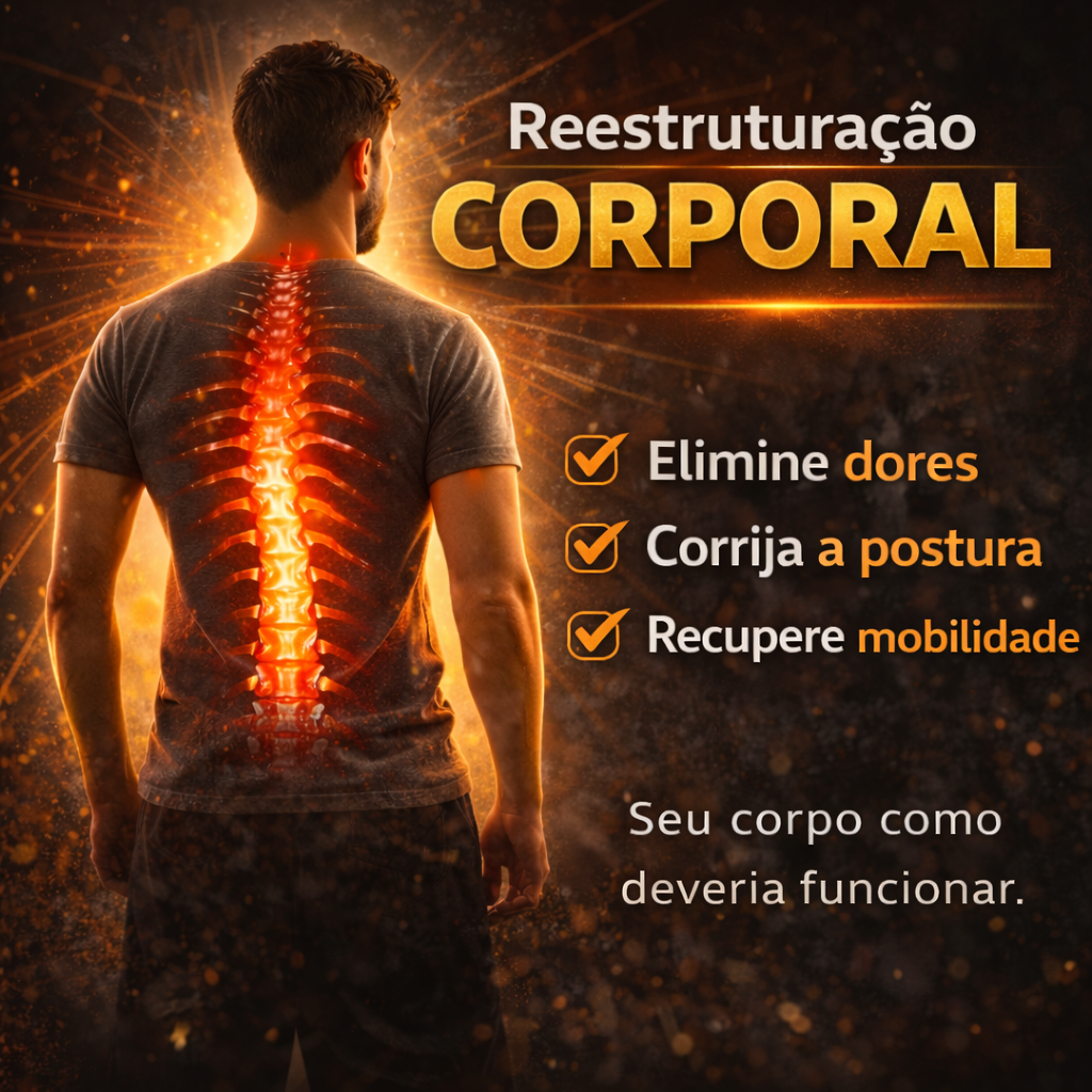 Com o programa prático e objetivo de Reestruturação Corporal, elimine dores, corrija a postura e recupere mobilidade sem depender de academia ou tratamentos intermináveis. Aprenda a reorganizar seu corpo com exercícios específicos, simples e eficazes, aplicáveis na sua rotina diária em poucos minutos. Adquira o programa agora e tenha seu corpo funcionando como deveria em menos de 15 minutos diarios.